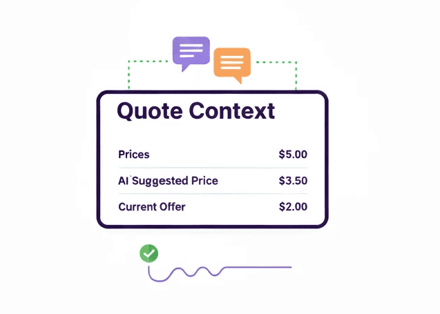 Both parties see the same quote details — items, quantities, prices, current offer. No more "which version?" confusion.