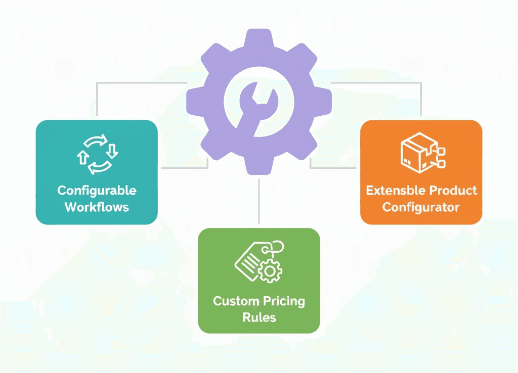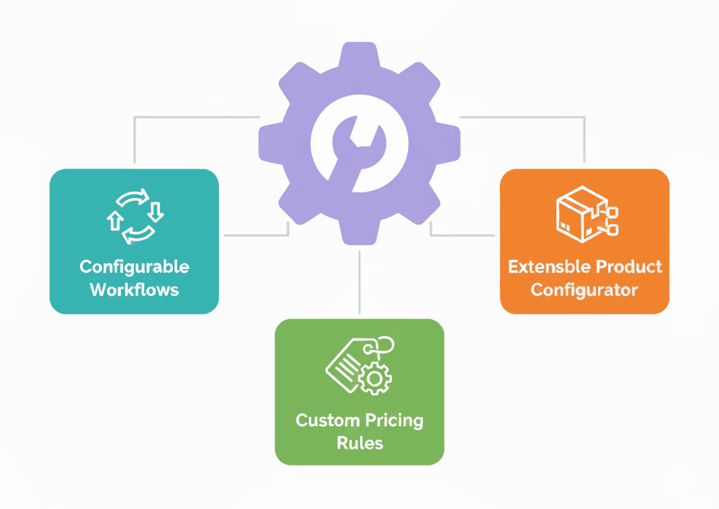 Adapt to your process without code changes. Configurable workflows, custom pricing rules, extensible product configurator.