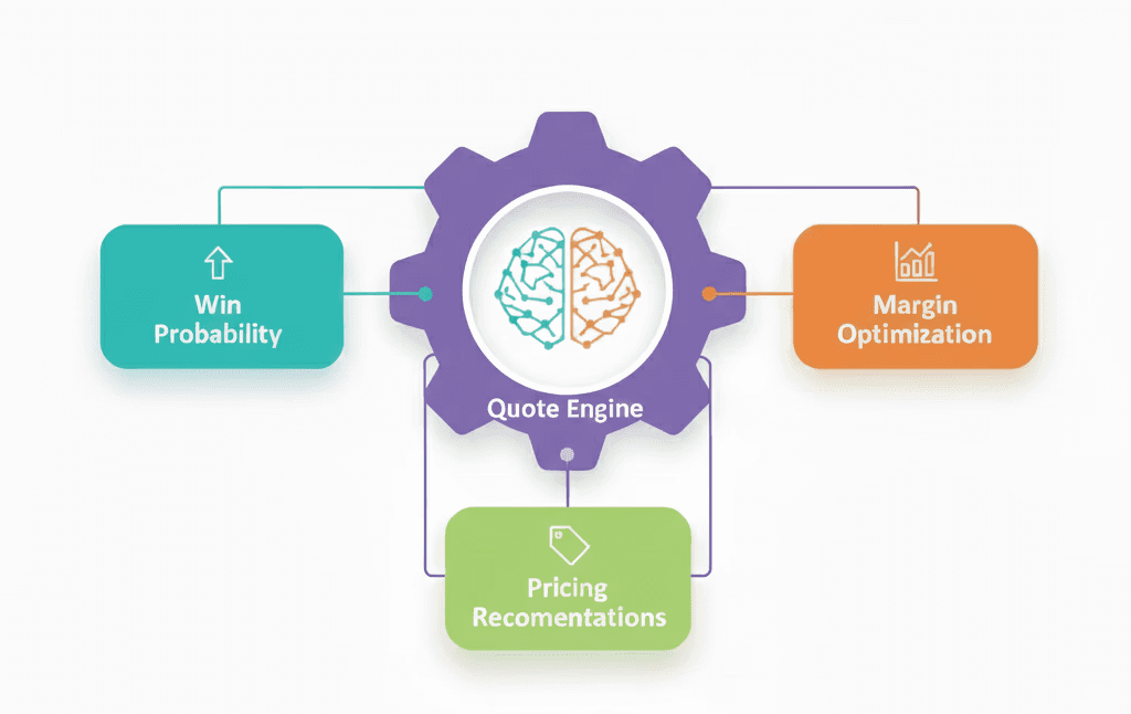 Machine learning in the Quote Engine for win probability, margin optimization, and pricing recommendations
