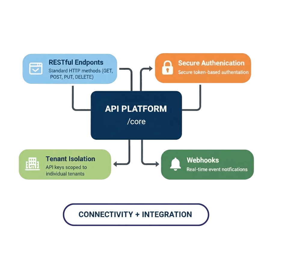 Every feature in Nova Core is exposed via RESTful APIs. This isn't an afterthought — it's the foundation. Your frontend, mobile app, ERP, CRM, and third-party tools all speak the same language.