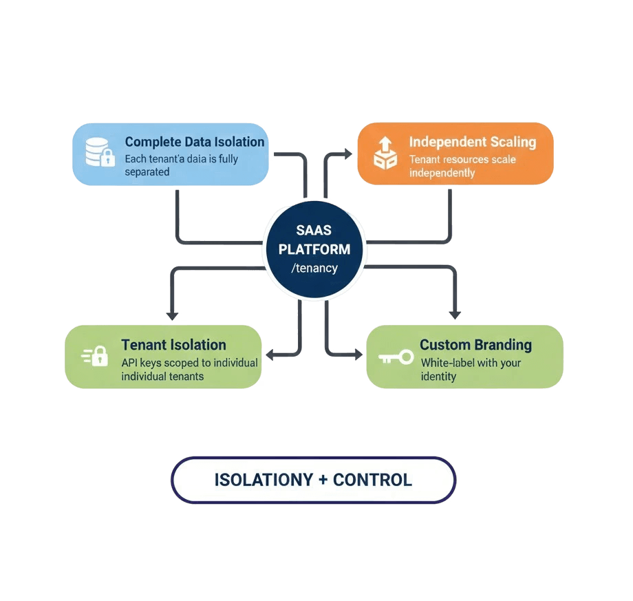 Nova Core is built for true SaaS multi-tenancy. Every tenant operates in complete isolation — no shared data, no cross-tenant access, no compromises.